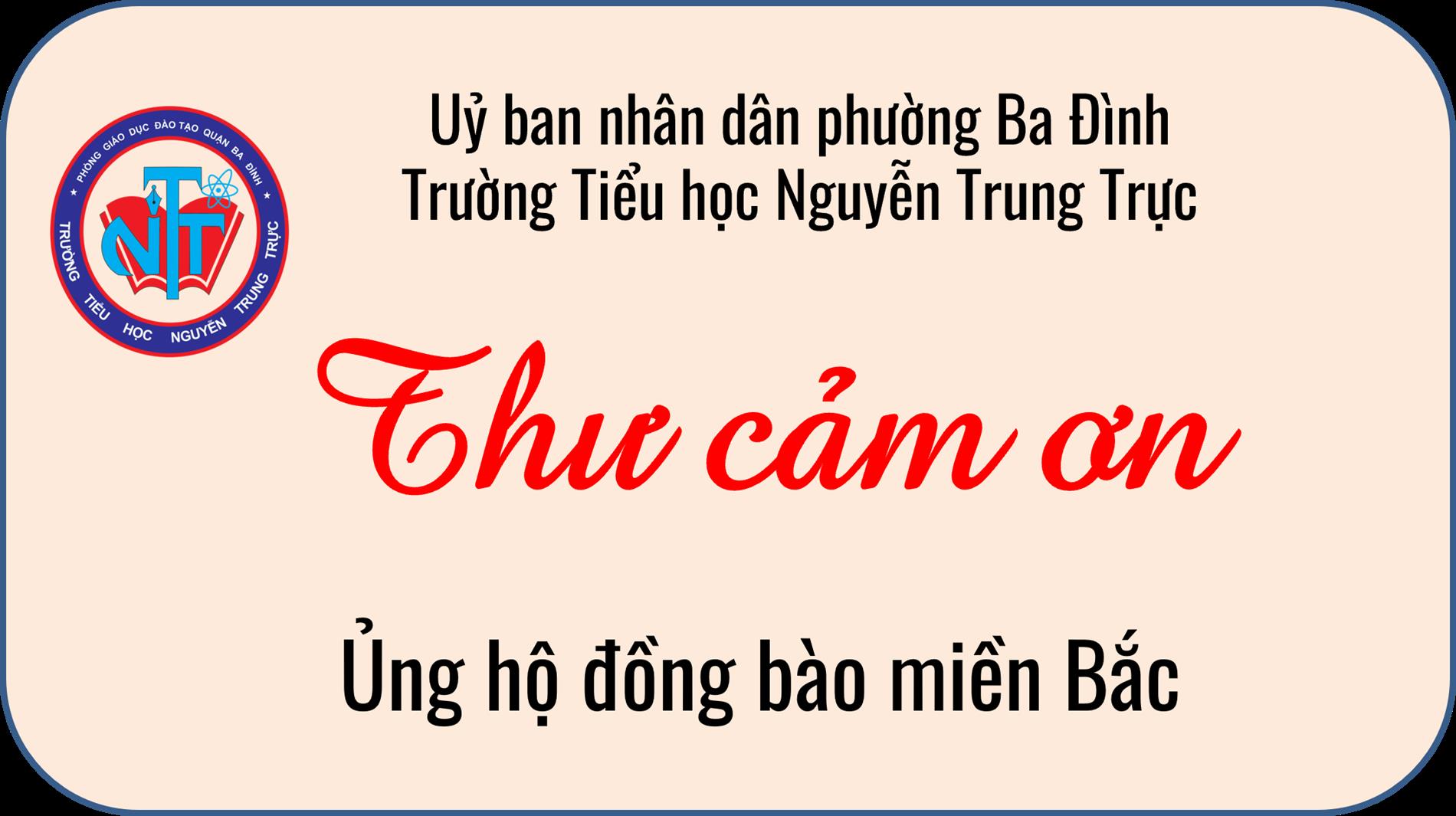 Thư cảm ơn tập thể Trường Tiểu học Nguyễn Trung Trực chung tay hướng về miền Bắc thân yêu