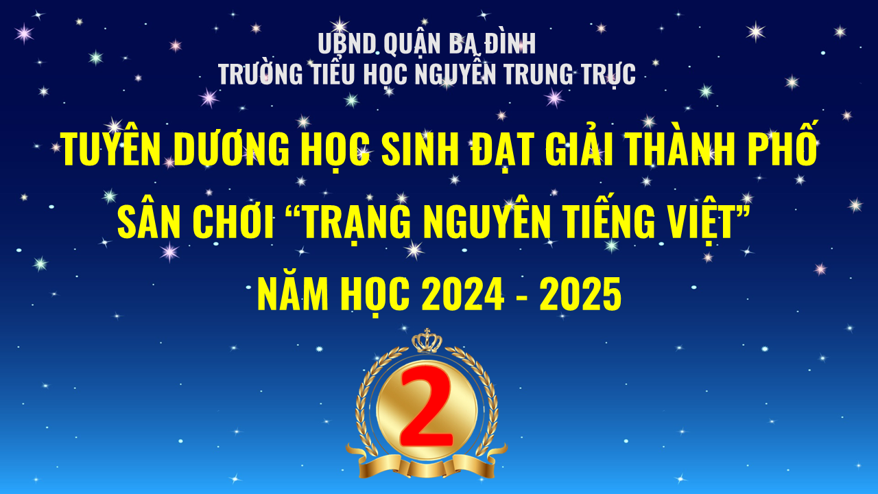 Nhà trường xin chúc mừng các con học sinh khối 1,2,3 đạt giải vòng thi Hội - cấp Thành phố sân chơi "Trạng Nguyên Tiếng Việt" năm học 2024 - 2025.