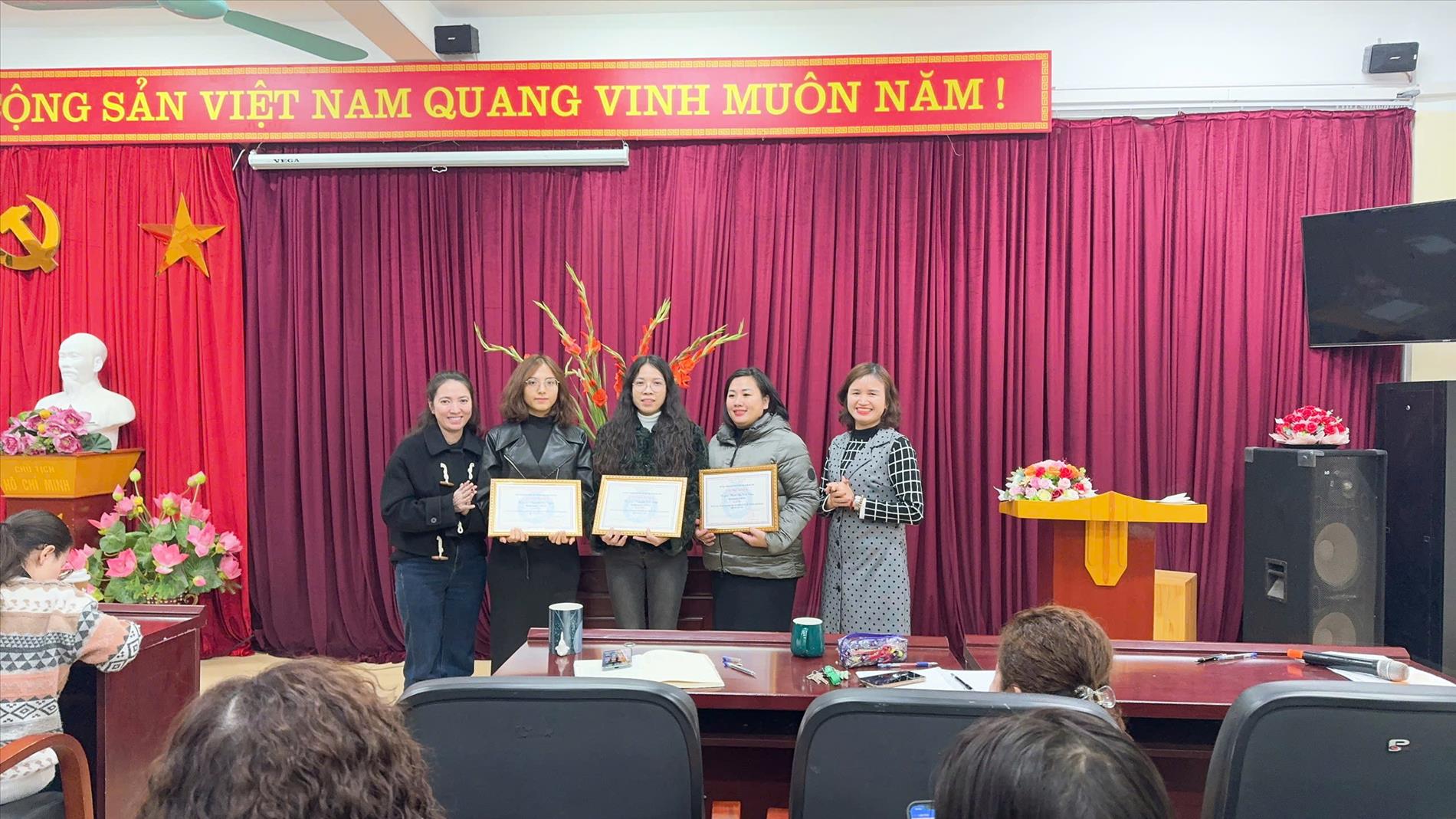 Trao giấy chứng nhận giáo viên Giỏi cấp quận cho các cô giáo trong Hội thi Giáo viên dạy giỏi quận Ba Đình năm học 2024 - 2025.