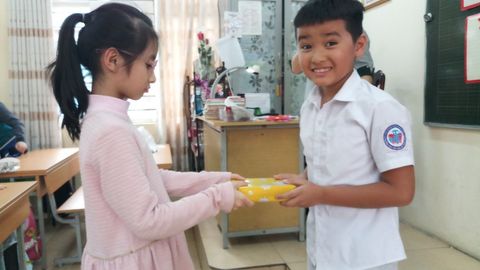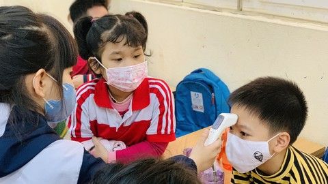 Tiết Hoạt động trải nghiệm thực hành biện pháp 5K của các con lớp 1A2