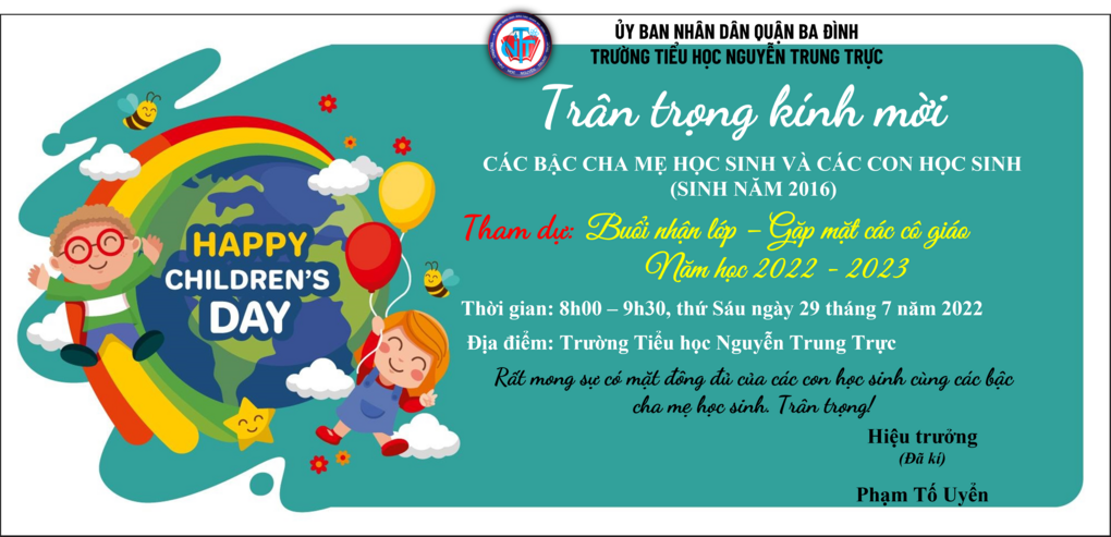 Giấy mời tham dự buổi nhận lớp - gặp mặt giáo viên lớp 1 năm học 2022 - 2023